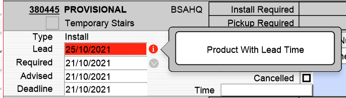 When Set, The Product Lead times will display on the Booking Pop UP, Booking Actions and Phone Calls Screen.