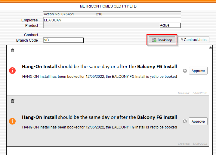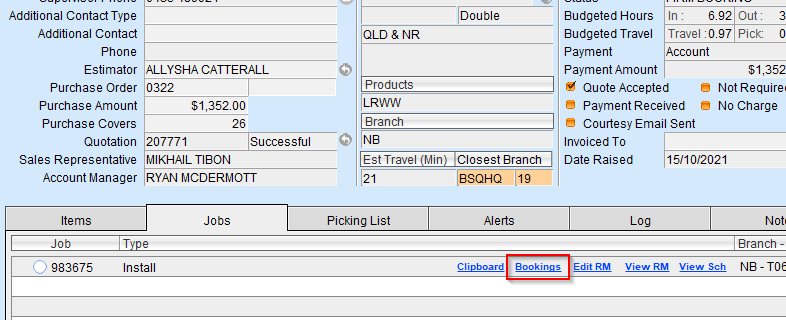- Use this after you've gone to contract and booked the job to pull in the new job and dates.