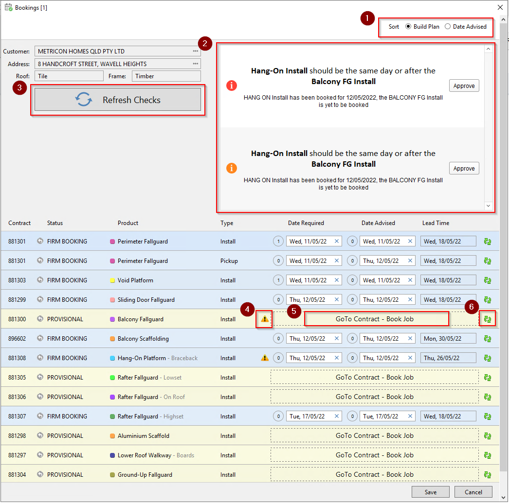 1. Sort the list of jobs by either Build Plan or Date Advised ascending.
