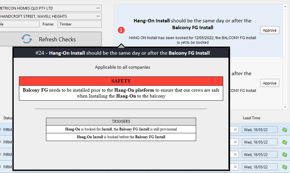 - This will refresh the Product Checks based on changesin this screen before saving.