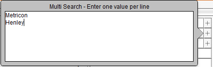 By clicking on the plus icon you can enter multiple names, contract numbers etc to search for separated by a line break, as show below.